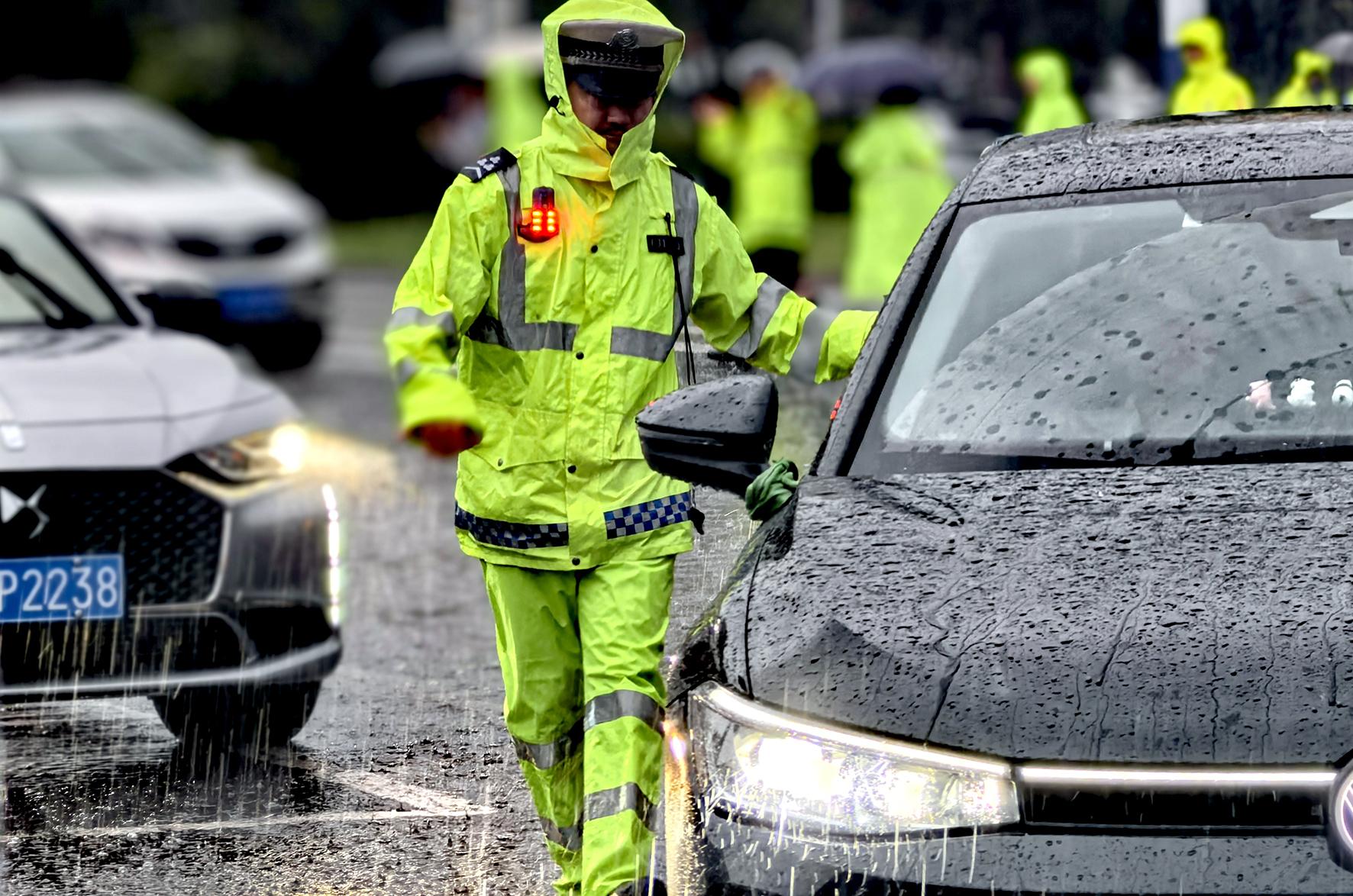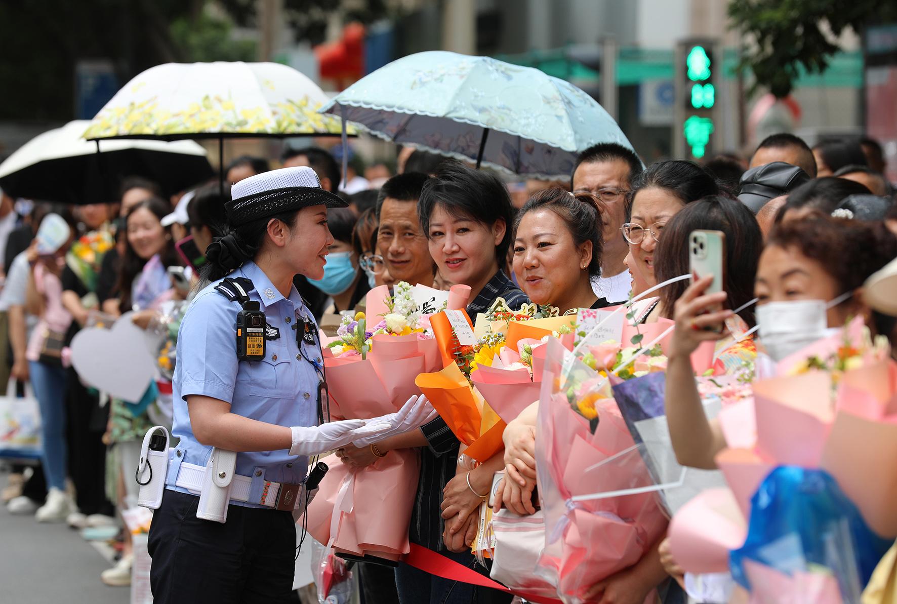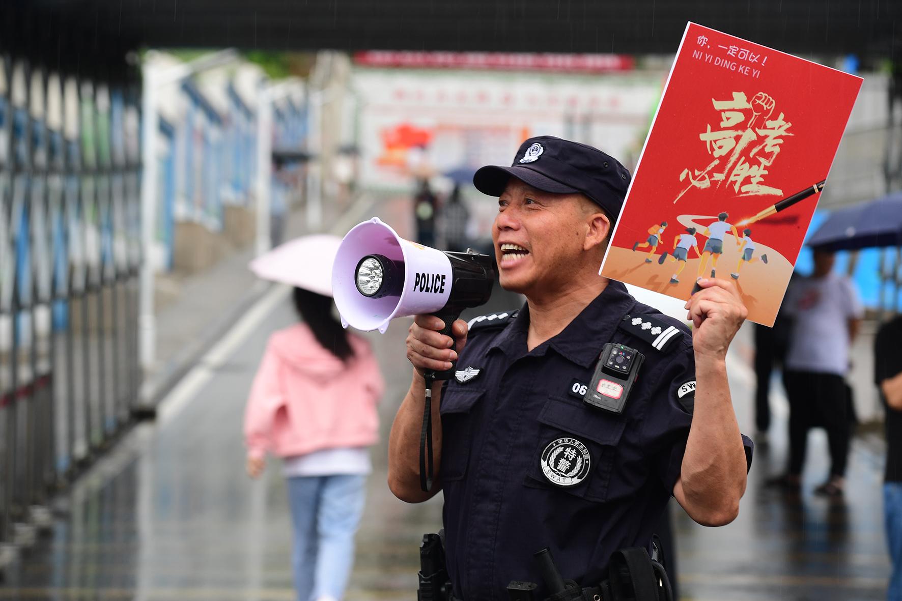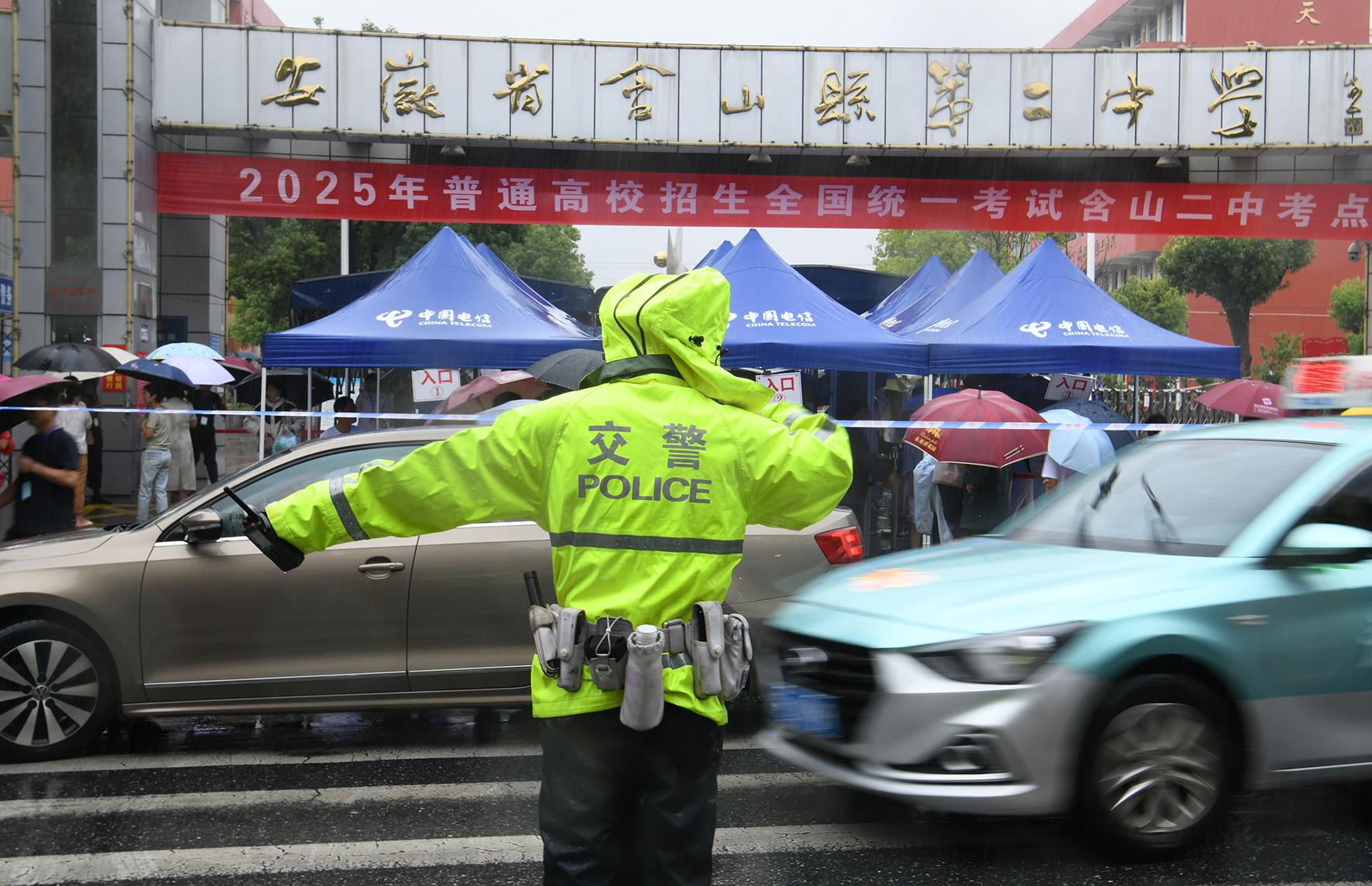 6月7日,江蘇省南通市在雨中迎來高考。南通市公安局民警全警動員,堅守崗位,護航學(xué)子圓夢。