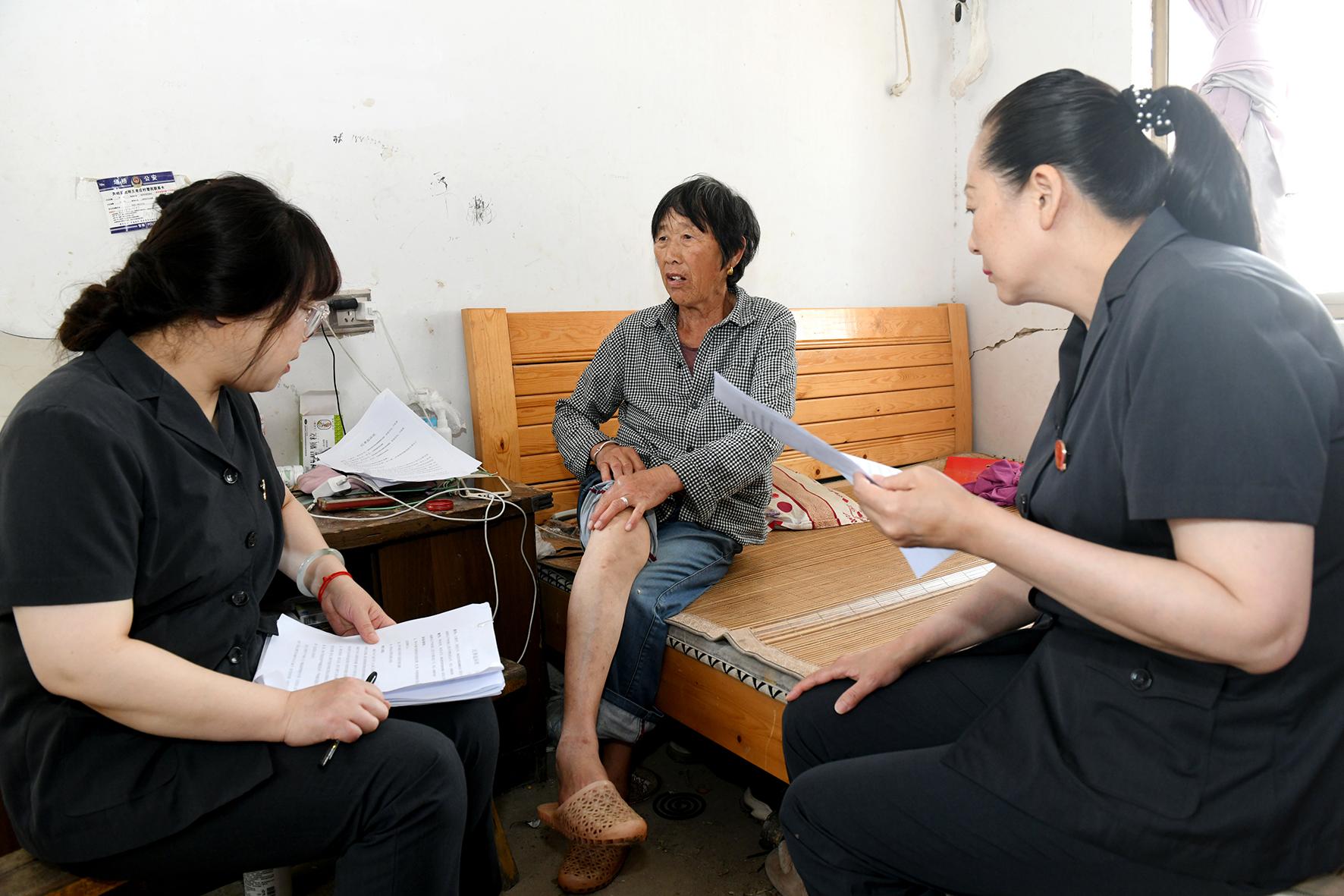 6月11日上午,安徽省宿州市埇橋區(qū)人民法院立案庭法官在轄區(qū)蘆嶺鎮(zhèn)王老莊村為行動不便的當(dāng)事人辦理立案手續(xù)。