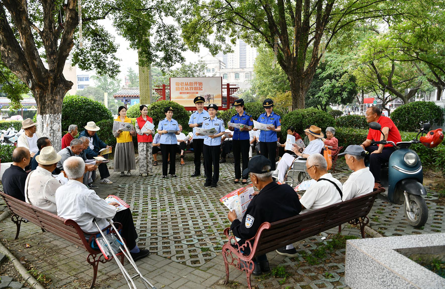 6月12日,安徽省阜南縣公安局經(jīng)偵民警聯(lián)合市場(chǎng)監(jiān)督管理執(zhí)法人員、城市管理執(zhí)法人員在街心公園向群眾開(kāi)展“守護(hù)錢袋子 護(hù)好幸福家”宣傳活動(dòng)。