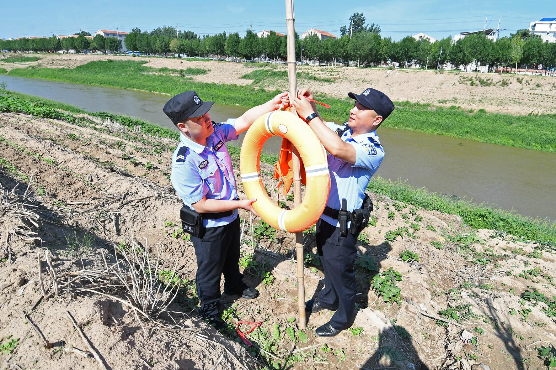7月3日,河南省浚縣公安局衛(wèi)溪派出所組織民輔警深入轄區(qū)河道、池塘等重點水域開展安全隱患排查,增設(shè)救生圈、救生衣等安全防護(hù)設(shè)施,全力織牢防溺水安全網(wǎng)。