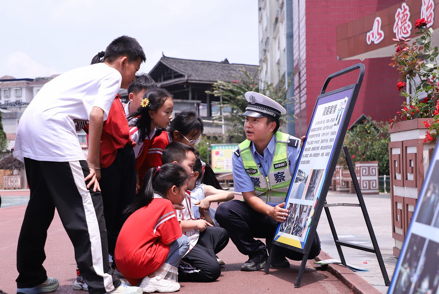 7月8日,貴州省丹寨縣交警大隊民警走進轄區(qū)城關二小,為同學們上了一堂暑假交通安全課。