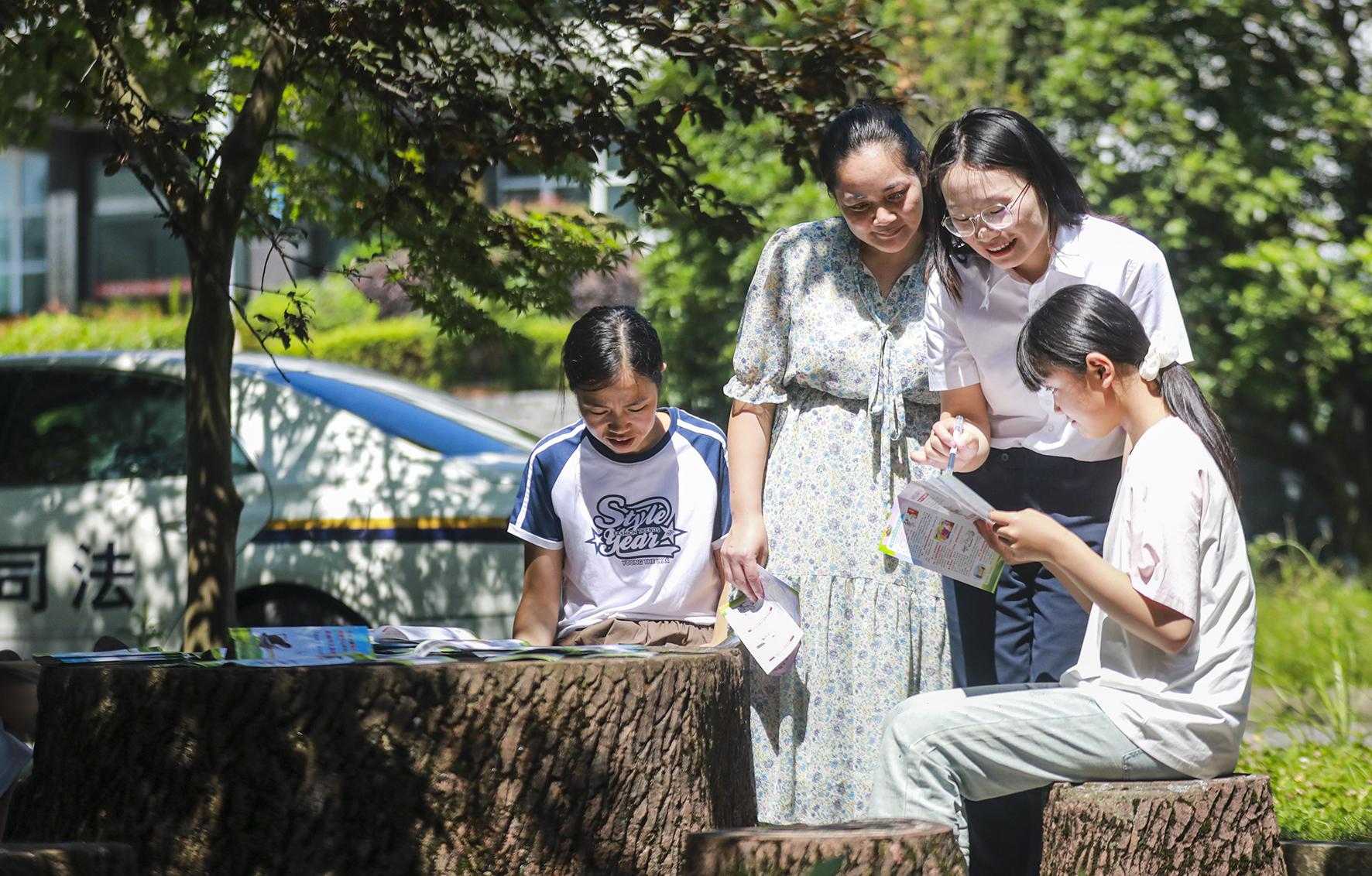 圖為7月15日,司法局工作人員在谷里鎮(zhèn)香山社區(qū)指導(dǎo)孩子們學(xué)習(xí)健康上網(wǎng)知識。