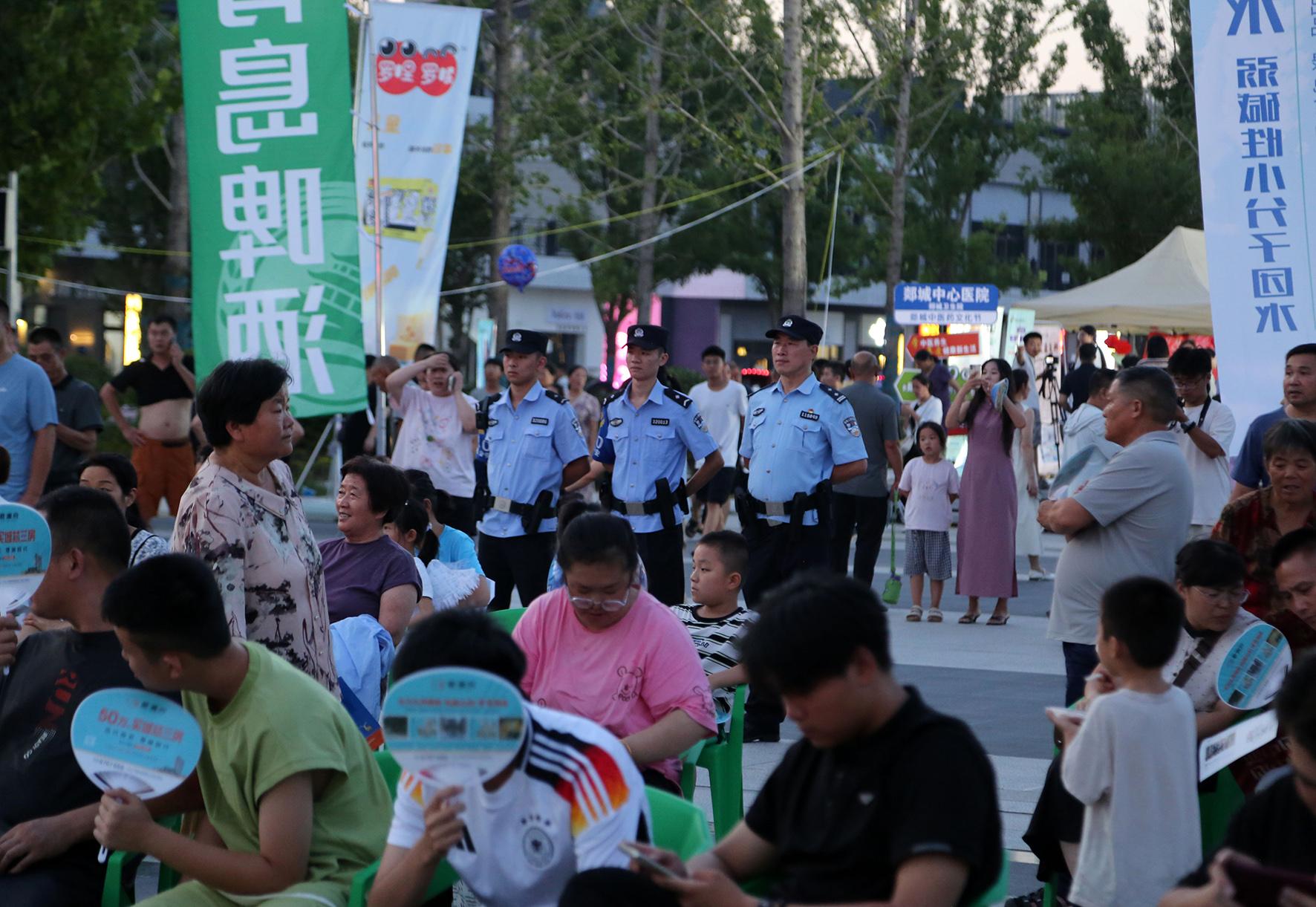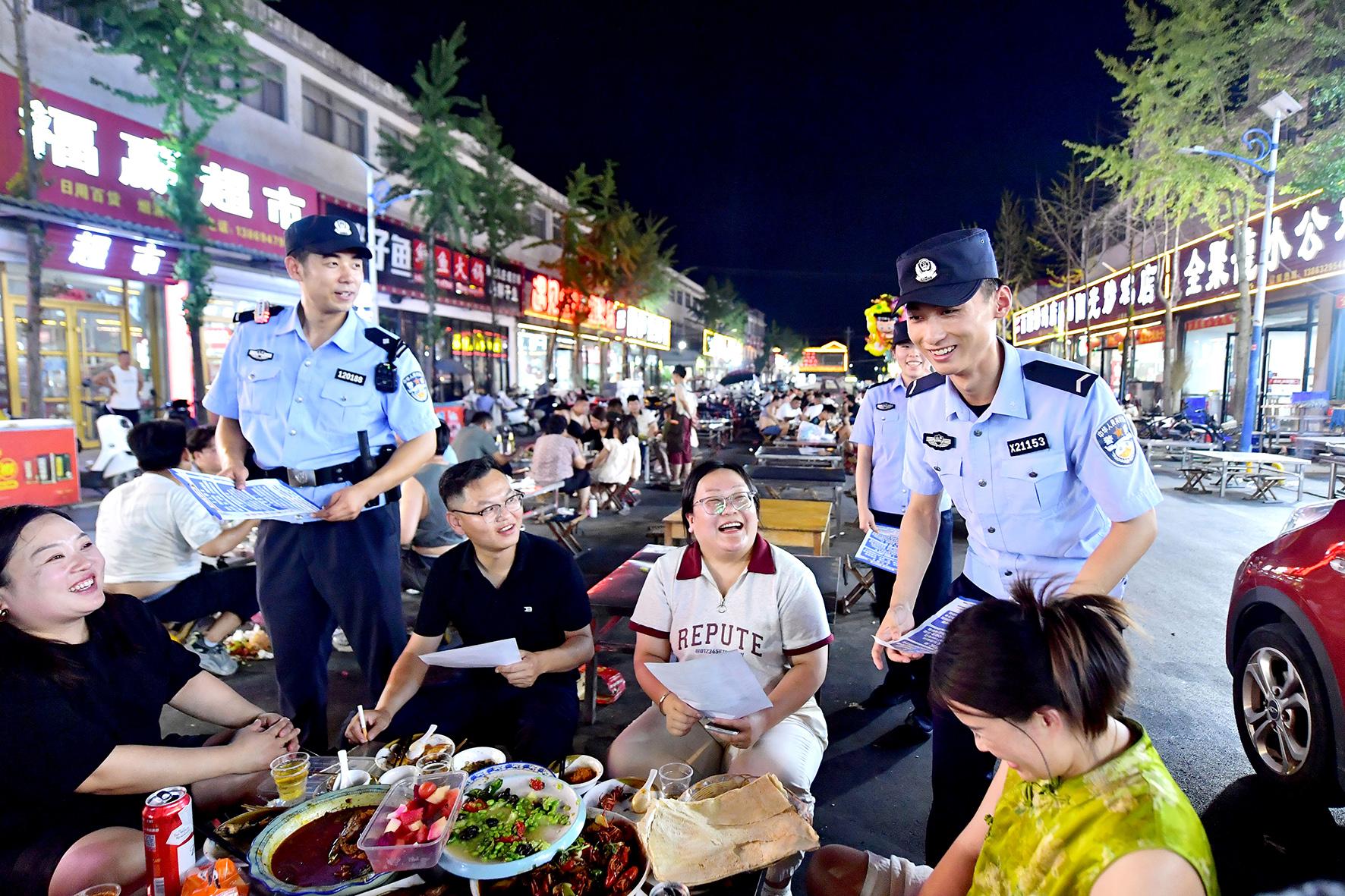 7月27日,山東省郯城縣公安局開(kāi)啟“夜間警務(wù)”模式,民輔警在人流密集區(qū)執(zhí)勤。