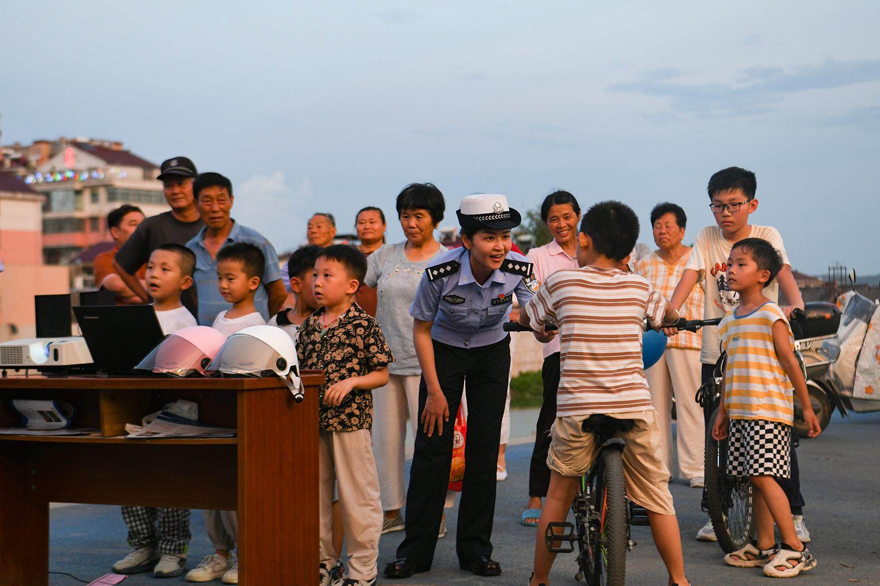 7月28日晚,安徽省馬鞍山市含山縣公安局交管大隊民警走進清溪鎮(zhèn),通過播放交通安全典型事故警示片向群眾宣傳交通安全知識。