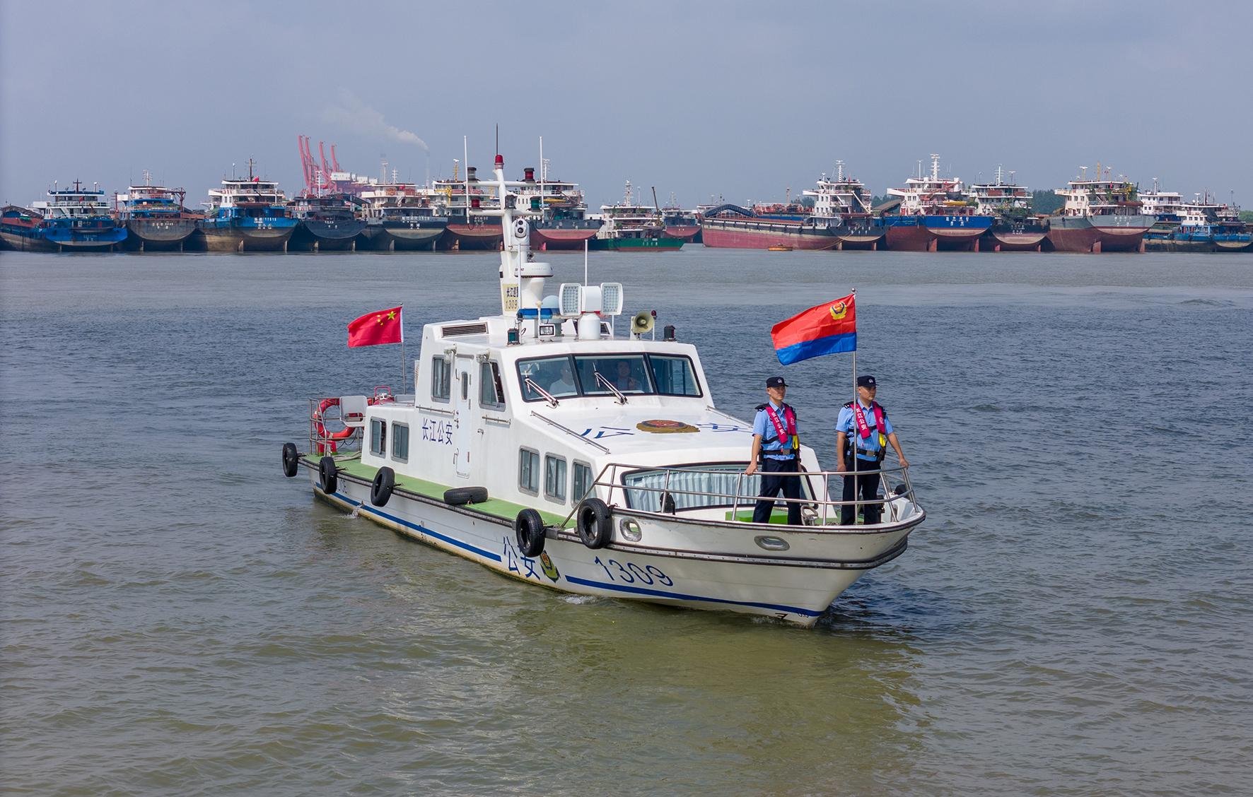 圖為民警在長(zhǎng)江鎮(zhèn)江段荷花池錨地水域開(kāi)展水上巡邏。