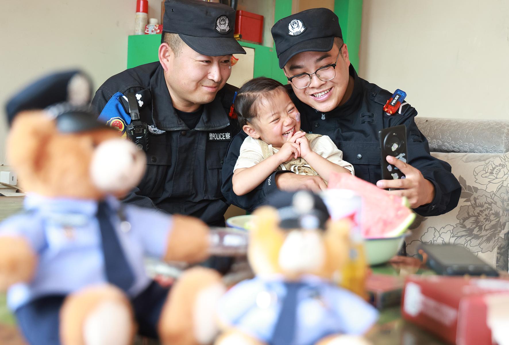 當(dāng)晚,民警們要輪崗去其他點(diǎn)位執(zhí)勤?,幀幖绷?,她緊緊拉住蘇明凱的手,哭著說:“叔叔別走!別走嘛……”看著孩子哭得通紅的小臉,蘇明凱柔聲承諾:“瑤瑤乖,叔叔過幾天就回來看你,好不好?”瑤瑤抽噎著說:“那……那我要兩個(gè)‘貼貼’!”