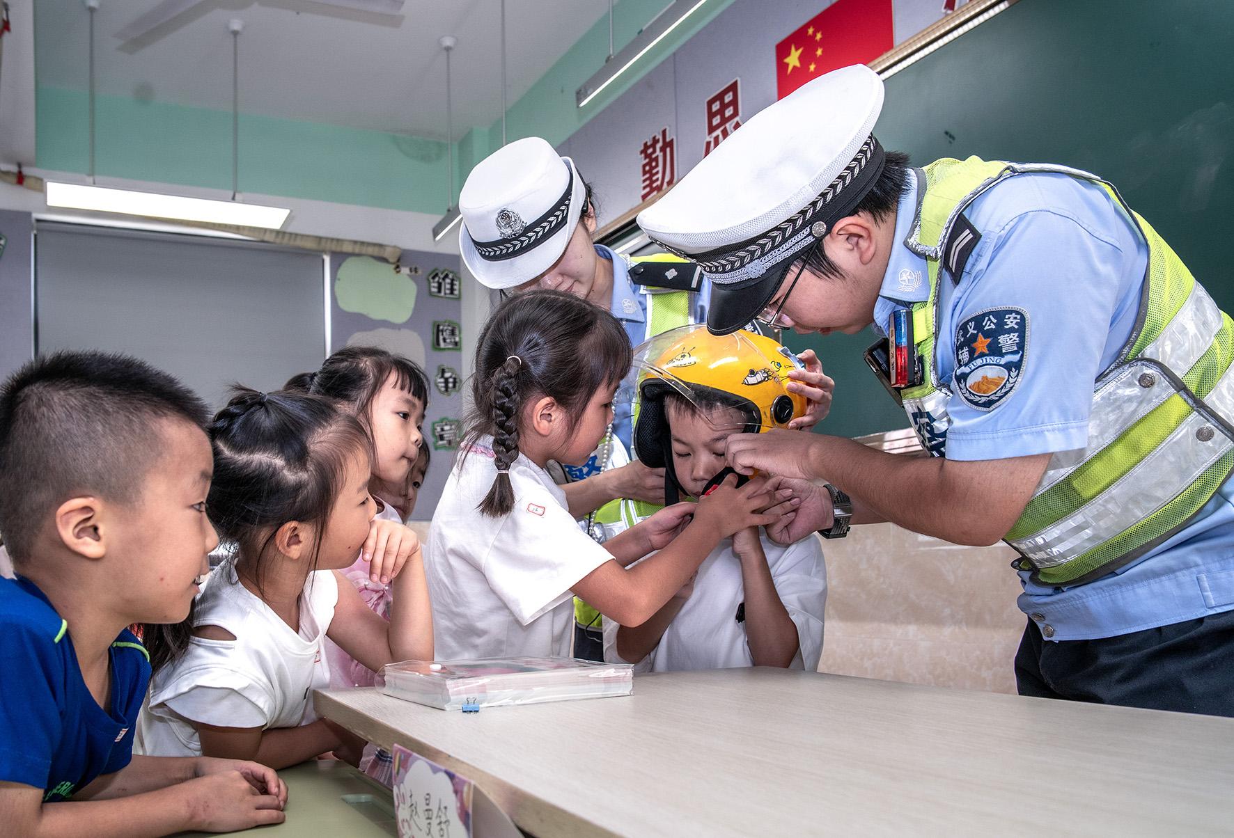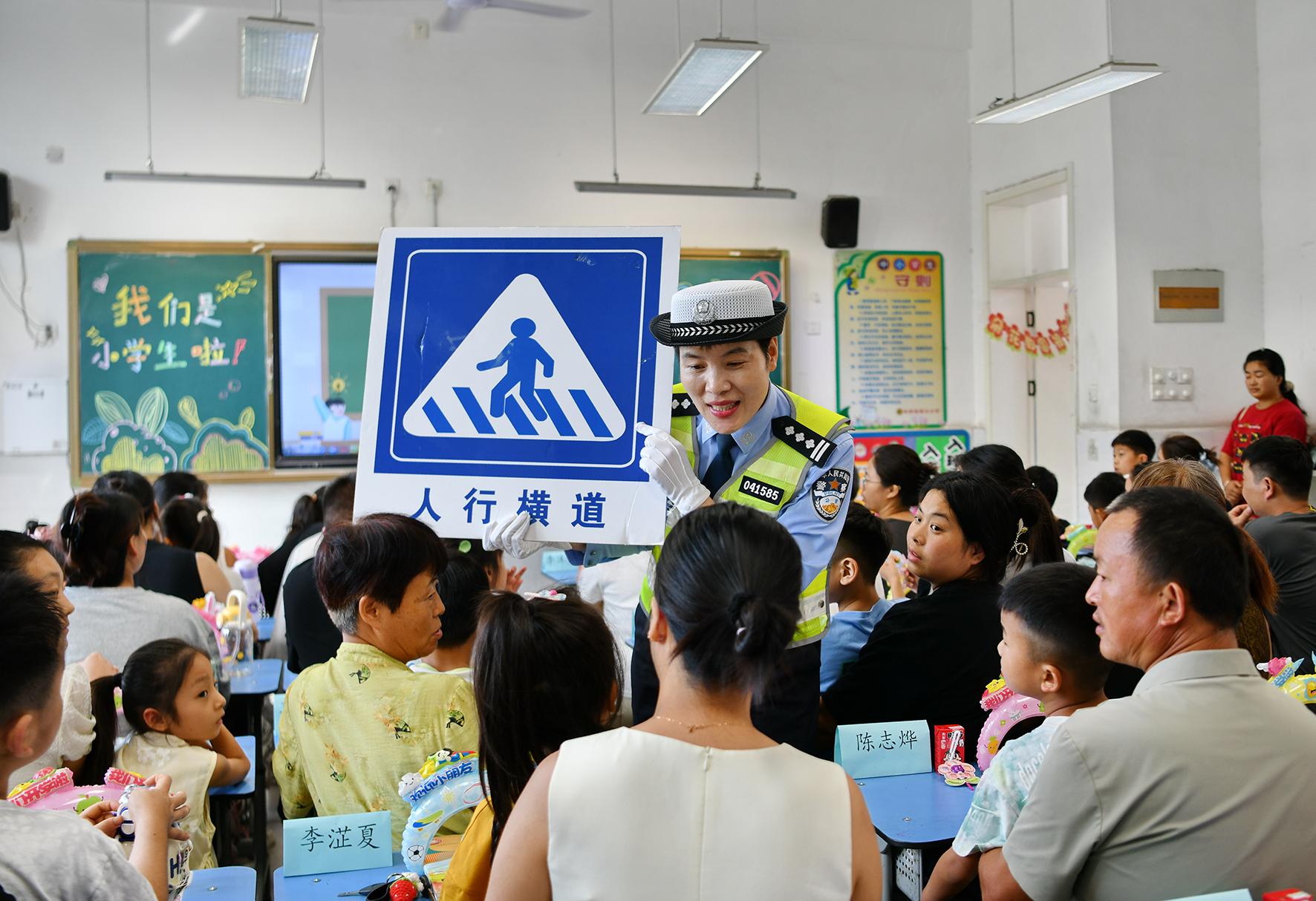 9月1日,浙江省武義縣公安局交警大隊民警輔警走進轄區(qū)壺山小學,為新入學的一年級小學生送上交通安全教育第一課。