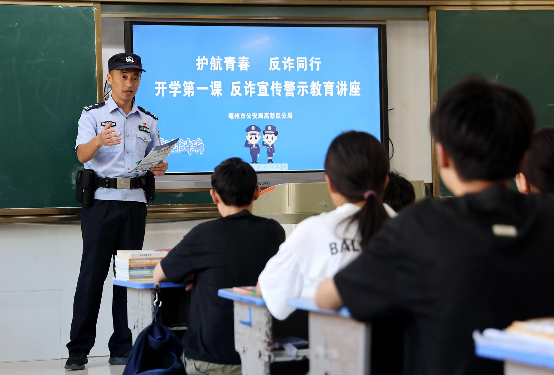 9月1日,安徽省亳州市公安局高新區(qū)分局民輔警走進轄區(qū)學校開展“開學第一課”活動,不斷提升廣大師生的安全防范意識。