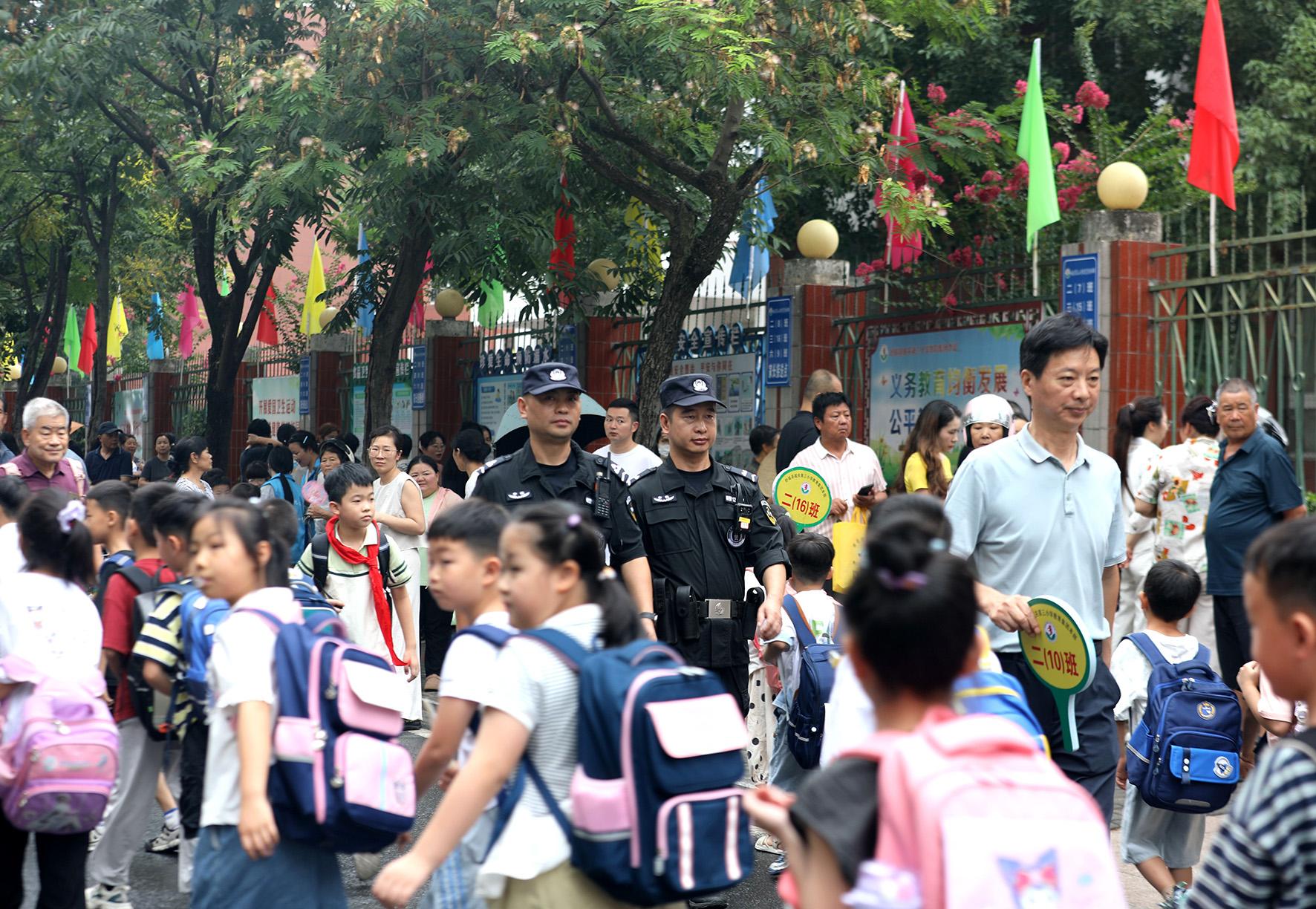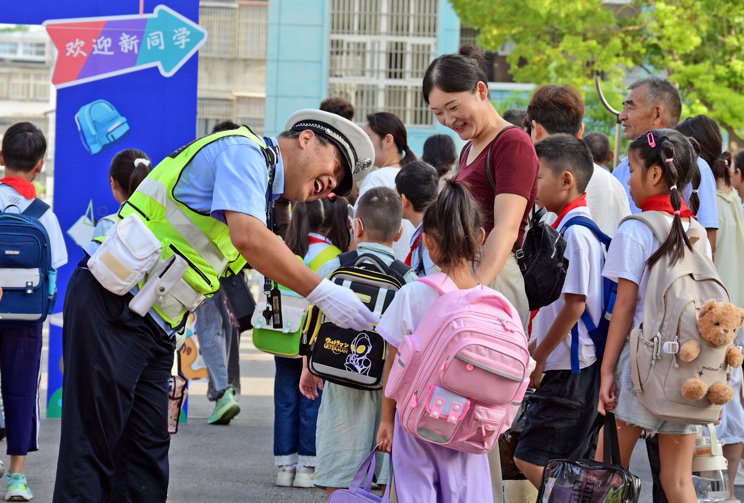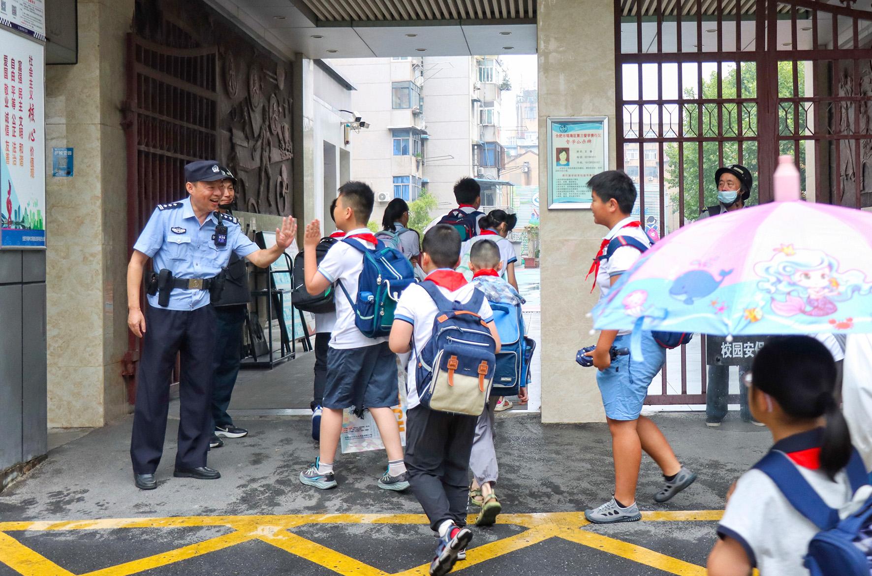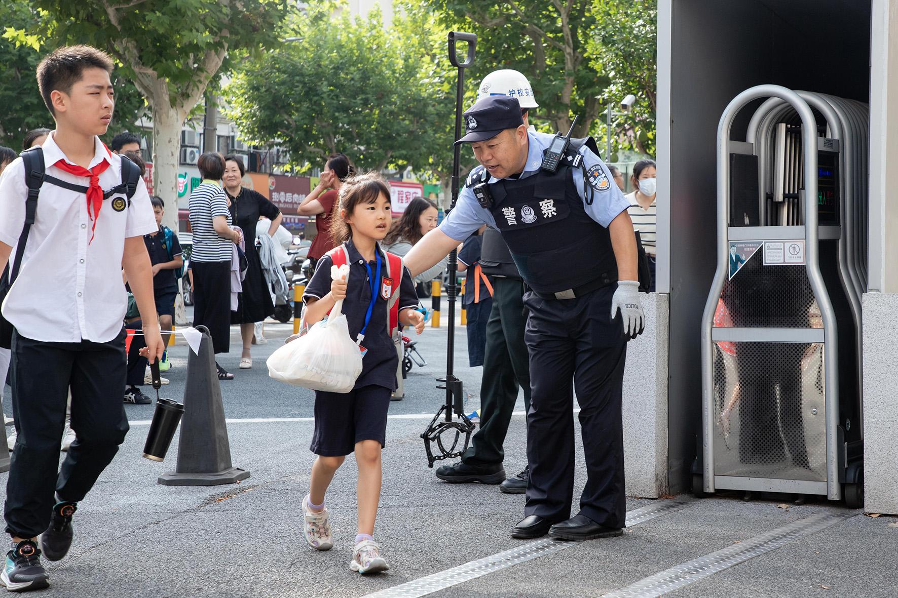 9月1日,安徽省合肥市公安局瑤海分局大通路派出所民警在滁州路小學護學崗執(zhí)勤。
