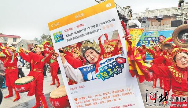 在“樂享河北隨手拍”活動(dòng)現(xiàn)場(chǎng),演員展示活動(dòng)宣傳牌,邀請(qǐng)公眾參與。