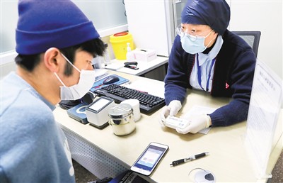1月7日,上海市部分社區(qū)預(yù)防接種門(mén)診開(kāi)始為因私出國(guó)工作、學(xué)習(xí)人員提供新冠疫苗預(yù)約緊急接種服務(wù)。自2021年1月7日0時(shí)起,上海市民可通過(guò)“健康云”APP在線(xiàn)24小時(shí)登記和預(yù)約。圖為上海市徐匯區(qū)康健街道社區(qū)衛(wèi)生服務(wù)中心醫(yī)務(wù)人員向接種者展示疫苗品名和有效期等信息。