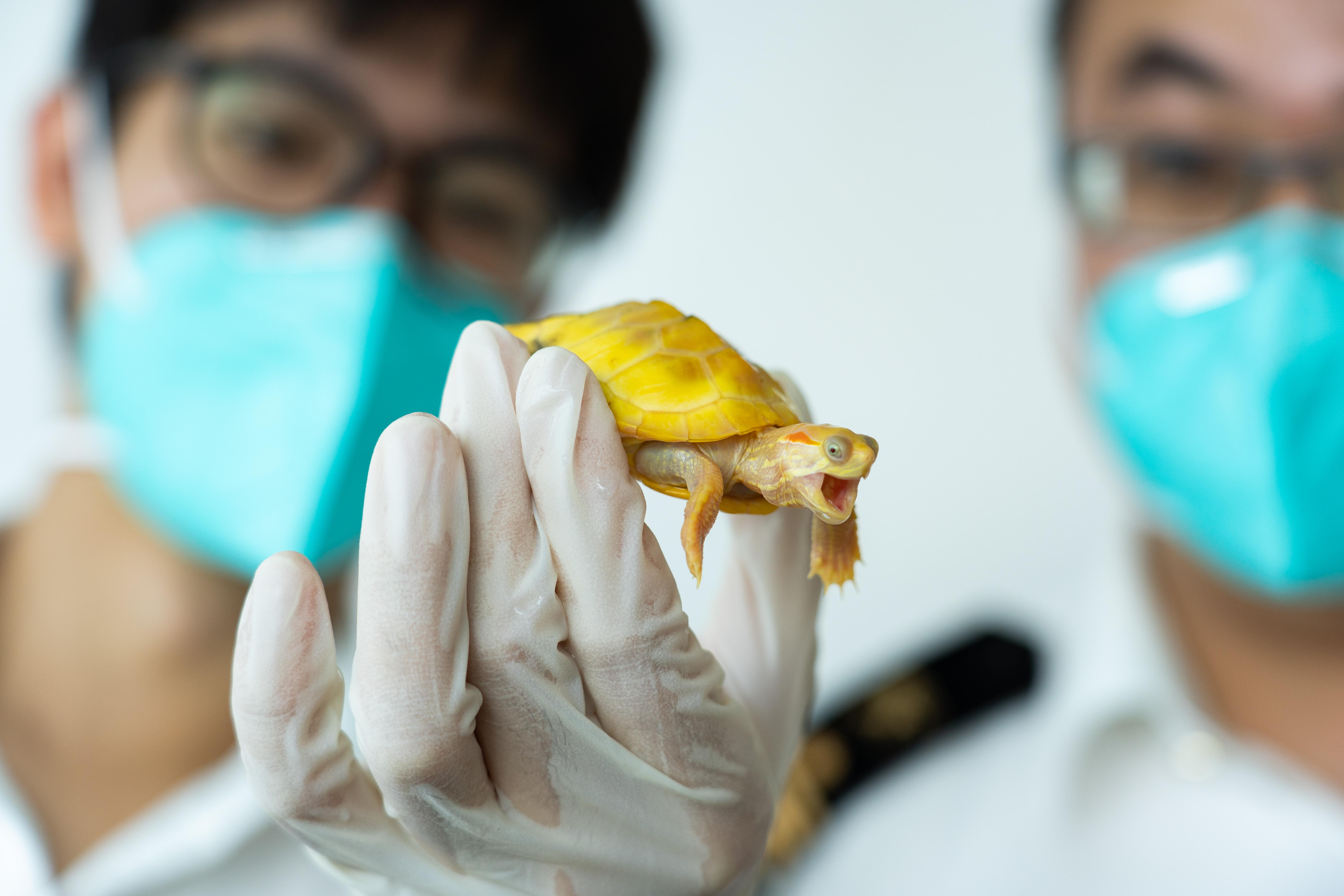 圖為:港珠澳大橋海關(guān)關(guān)員查獲的紅耳彩龜。本報通訊員 林昌鋒攝