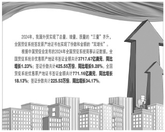 2024年,我國(guó)外貿(mào)實(shí)現(xiàn)了總量、增量、質(zhì)量的“三量”齊升,全國(guó)貿(mào)促系統(tǒng)簽發(fā)原產(chǎn)地證書(shū)也實(shí)現(xiàn)了份數(shù)和金額的“雙增長(zhǎng)”。