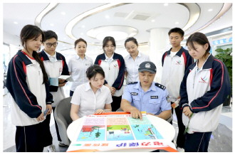為普及電力設(shè)施保護(hù)及用電安全知識(shí),國(guó)網(wǎng)新疆電力有限公司昌吉供電公司近日聯(lián)合新疆維吾爾自治區(qū)昌吉市公安局北方南路派出所,在昌吉雪蓮營(yíng)業(yè)廳為昌吉第四中學(xué)學(xué)生開(kāi)展普法宣傳活動(dòng),圖為活動(dòng)現(xiàn)場(chǎng)。 本報(bào)通訊員 張桂花 攝