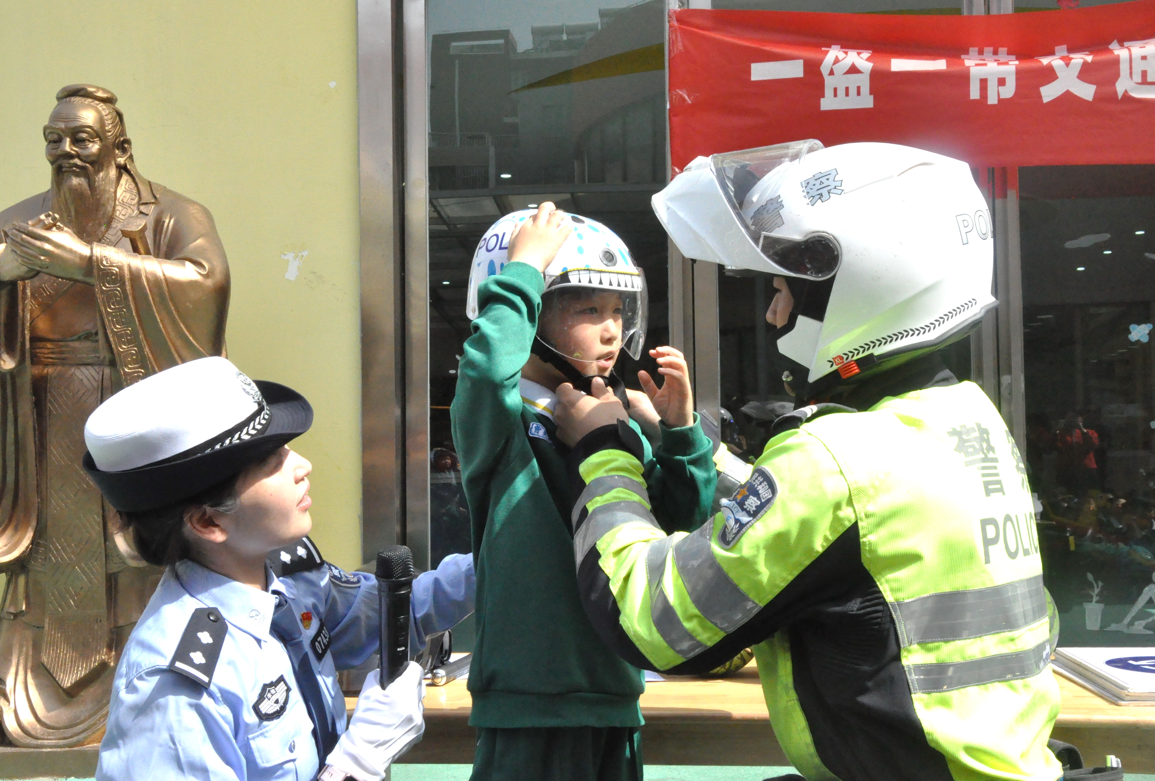 5月6日,安徽省含山縣公安局交警大隊民警深入轄區(qū)幼兒園,組織開展“一盔一帶”交通安全宣傳進校園活動。民警結合幼兒實際,通過實物對比、現場體驗、互動問答等形式,向小朋友們宣講出行安全基本常識以及駕乘電動車不佩戴安全頭盔、乘坐汽車不系安全帶存在的安全隱患及危害性。圖為民警現場教小朋友如何正確佩戴安全頭盔。