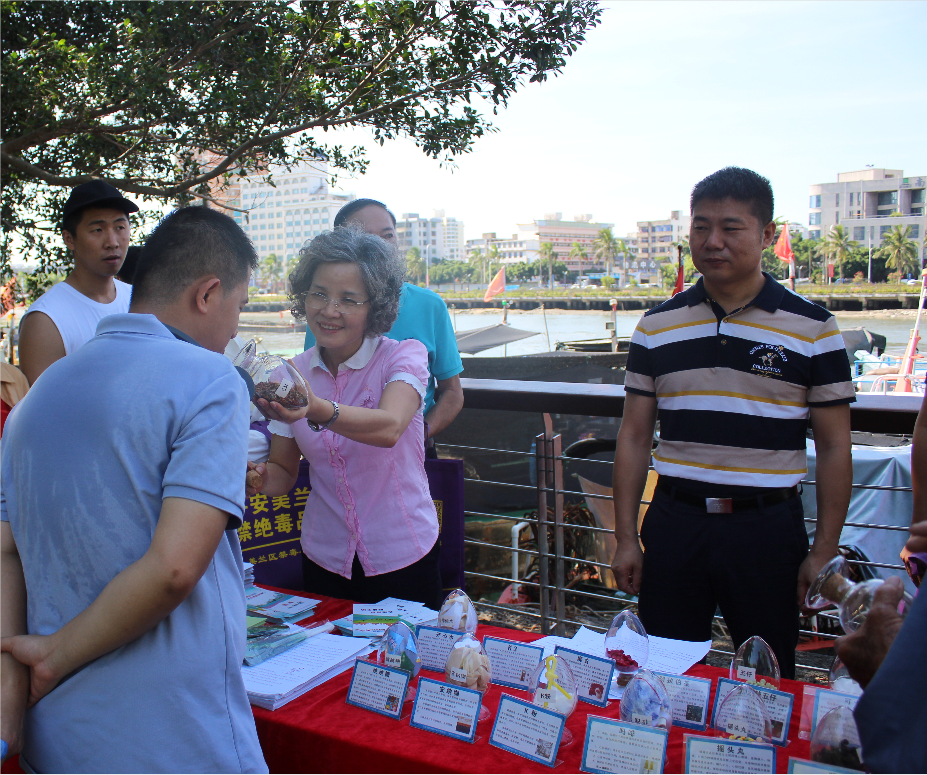 值“6·26”國際禁毒日到來之際,海南省??谑忻捞m區(qū)海甸街道海岸線驛站開展“護(hù)航自貿(mào)港—禁毒在行動(dòng)暨慶祝建黨100周年”為主題的全民禁毒宣傳。圖為6月20日,工作人員為漁民介紹毒品的危害。