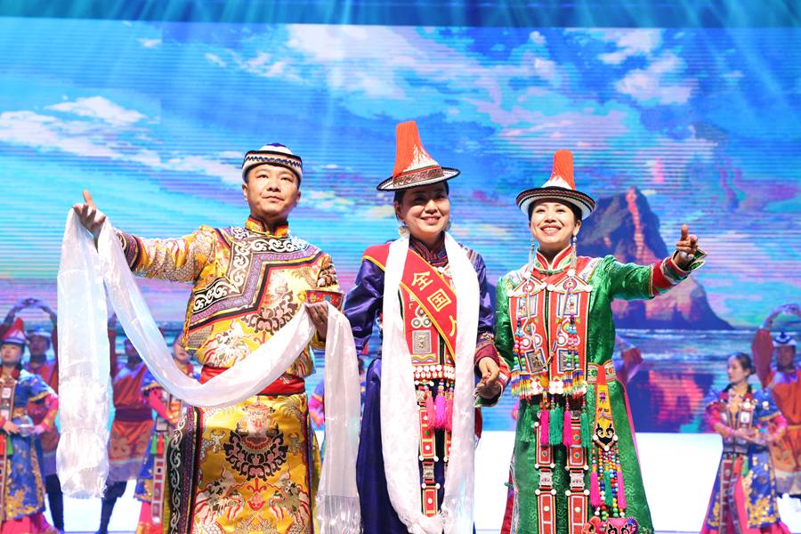 《裕固兒女心向黨》分為《日出祁連》《花開草原》《盛世肅南》三個章節(jié),用舞臺藝術(shù)濃縮了裕固族極具魅力的文化內(nèi)涵和歷史底蘊,巧妙地糅合了國家級非物質(zhì)文化遺產(chǎn)保護名錄——裕固族民歌、服飾、婚俗等元素,通過音樂、舞蹈、民歌、民俗和美麗的祁連山草原風(fēng)光,全景展示了裕固族絢麗多彩的歷史文化、歌舞文化、民族文化和生產(chǎn)生活場景,體現(xiàn)了裕固族兒女在與大自然的和諧相處中,不僅建設(shè)了美麗的生活家園,同時還締造了豐富的精神世界。(高翔)