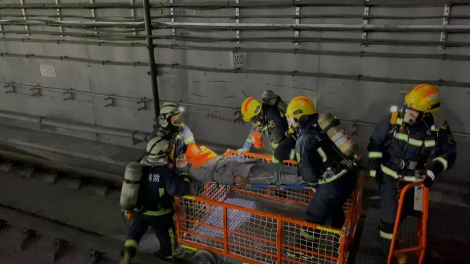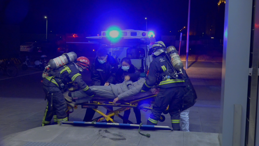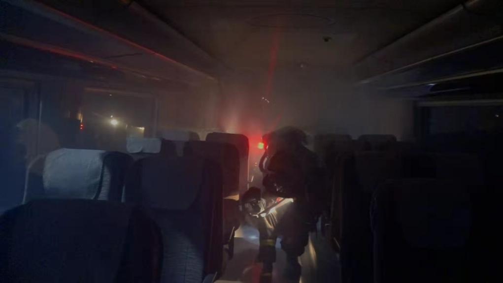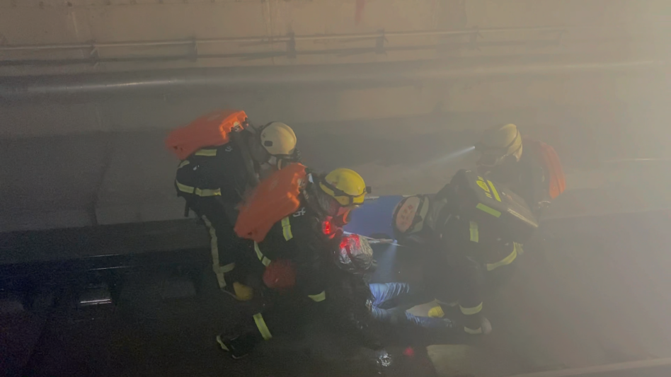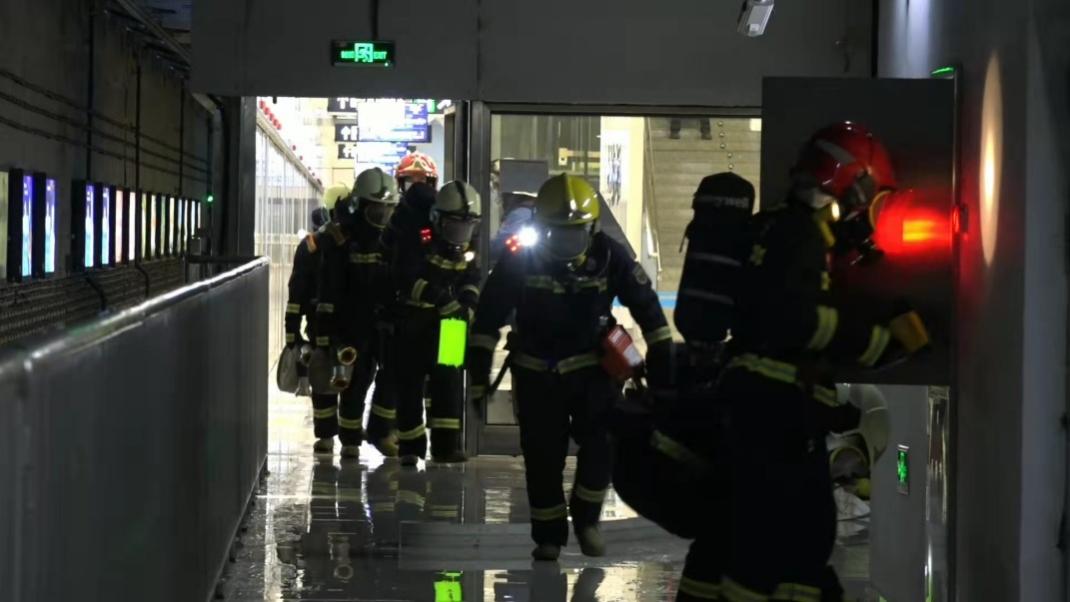 1月21日1時,演練正式開始。一列由大興新城地鐵站開往草橋站的地鐵因動力電機(jī)故障導(dǎo)致電氣線路起火燃燒,高溫?zé)煔庋杆傧蜍噹麅?nèi)蔓延,造成大量乘客被困。發(fā)生火災(zāi)后,大興新城地鐵站值班人員確認(rèn)事故后,立即啟動應(yīng)急處置預(yù)案,停運(yùn)就近線路列車運(yùn)行,并撥打119報警。地鐵工作人員利用應(yīng)急廣播向乘客播報情況穩(wěn)定乘客情緒,車站工作人員啟動應(yīng)急處置,地鐵微型消防站趕赴站臺,疏散站臺乘客,啟動固定消防設(shè)施。119指揮中心接警后立即啟動《北京市地鐵火災(zāi)事故滅火救援預(yù)案》,調(diào)集專業(yè)力量及社會聯(lián)動單位到場協(xié)同處置。消防隊(duì)站到場后成立偵查組、搜救組、滅火組、照明組、排煙組、保障組等多個小組,采取“接力疏散、陣地堵截、控?zé)熃禍亍钡燃紤?zhàn)術(shù)措施;搜救組在水槍掩護(hù)下進(jìn)入內(nèi)部偵察火情并優(yōu)先搜救被困人員,啟動接力疏散戰(zhàn)術(shù);滅火組采取“排煙散熱、開辟通道、雙向搜救、分段作業(yè)”等技戰(zhàn)術(shù)措施,利用滅火機(jī)器人、干式泡沫對起火地鐵車輛進(jìn)行滅火處置;轄區(qū)應(yīng)急、公安、交通、環(huán)衛(wèi)、氣象、醫(yī)療等聯(lián)動力量參與行動,提供外圍警戒、交通疏導(dǎo)、醫(yī)療保障等工作。1時35分,明火被撲滅,所有人員全部安全救出,人員得到妥善救助,綜合演練圓滿結(jié)束。