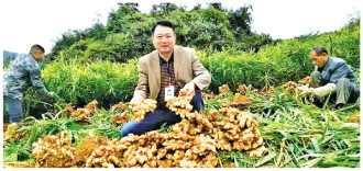 圖為楊帆幫助村民采收生姜。 張?zhí)鹛?攝