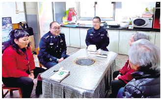 圖為任一可(左二)到社區(qū)居民家中進(jìn)行走訪,了解治安情況,收集意見。