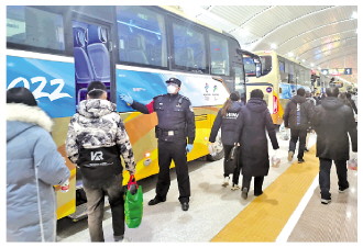 乘客大多都是國外友人,主要包括技術官員和媒體記者。冬奧列車運輸開始后,每天上下午都有一個運輸高峰期。不少國外友人提著大包小包上下車,趕往賽場或駐地。在這期間,張雄要做好接車工作,確保乘客安全進出站。同時要應對突發(fā)情況,“國外友人對列車的認知和我們不一樣,他們不太理解我們?yōu)槭裁匆崆?分鐘停止檢票。因此,我們要配合客運部門做好解釋工作?!睆埿壅f,此外,還有粗心落包的旅客,民警們要快速找到失主并將包送上車。