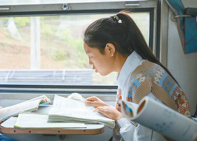 一名學(xué)生在乘坐成昆鐵路5633次列車途中復(fù)習(xí)功課。新華社記者 沈伯韓攝