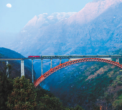 烏蒙山深處的北盤江大橋上,6081次公益慢火車駛過。葉傳增 楊永全攝影報(bào)道