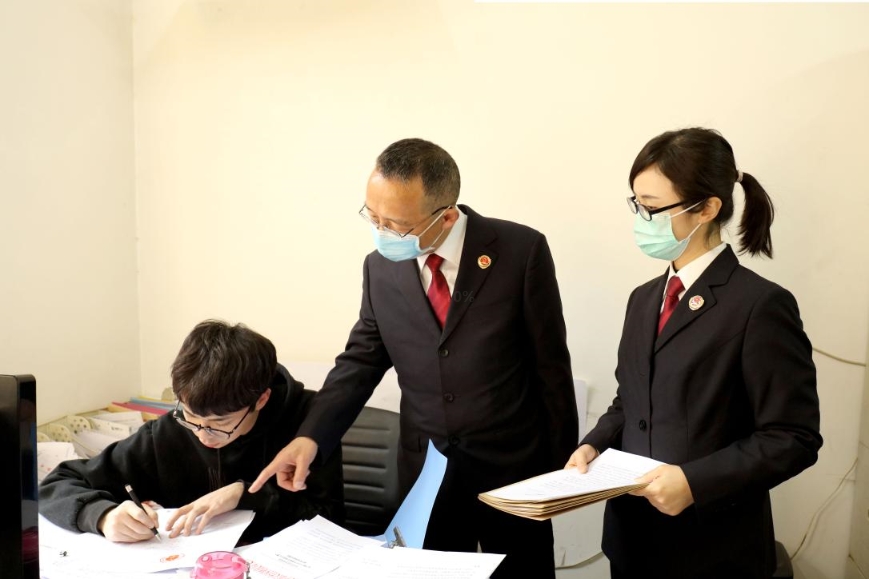 圖③ 檢察官在辦理涉未成年人公益訴訟案件。 漢中市漢臺區(qū)人民檢察院供圖