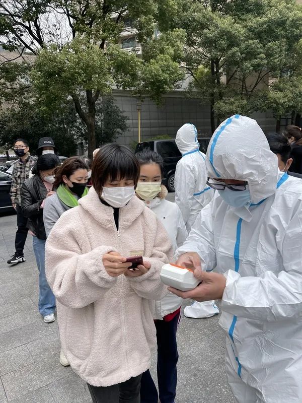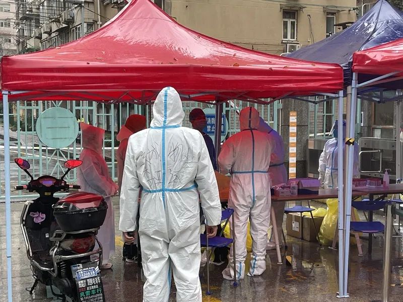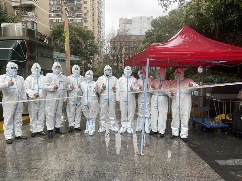 “許多外籍住戶對我們的工作評價非常高,因為他們從沒見過這樣一支有力的隊伍?!泵却罕硎?,從凌晨接到核酸篩查的任務,短短的幾個小時,從無到有,居委與物業(yè)就完成了臨時的檢驗棚的搭建,一米線設置、桌椅板凳、引導標志、動線安排……一支志愿者隊伍也誕生了。