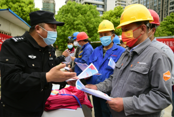 近日,江蘇省鎮(zhèn)江市潤州區(qū)七里甸司法所聯(lián)合七里甸派出所開展“國家安全法宣傳進工地”活動,工作人員來到五里社區(qū)轄區(qū)建設(shè)工地,向外來務(wù)工人員普及國家安全法及相關(guān)法律知識。圖為民警向外來務(wù)工人員宣講國家安全法及相關(guān)法律知識。