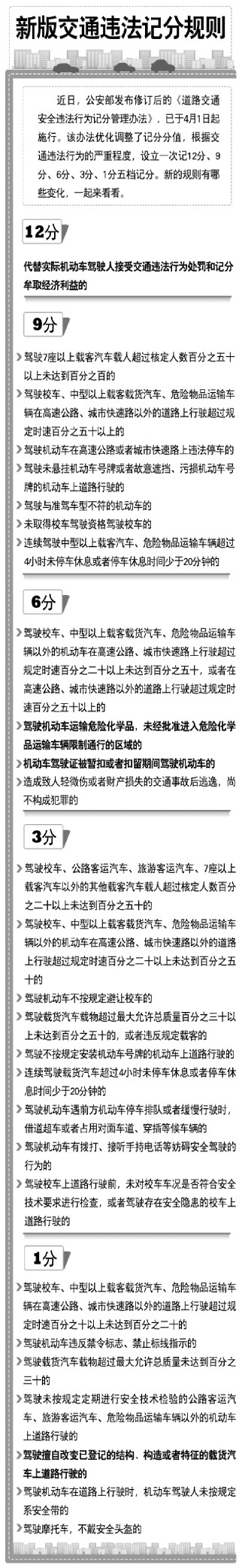 新版交通違法記分規(guī)則