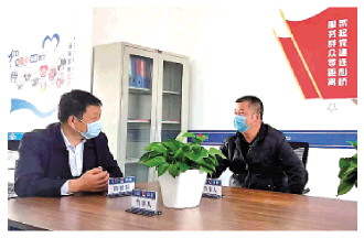 圖為陳金剛(左)在調(diào)解居民矛盾。