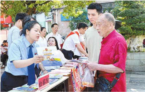6月15日,湖北省羅田縣檢察院干警來到該縣人民廣場開展打擊整治養(yǎng)老詐騙宣傳活動?;顒蝇F場,檢察干警圍繞養(yǎng)老詐騙的危害性、常見詐騙手段以及識別防范養(yǎng)老詐騙方法等內容開展宣傳,引導群眾樹立防范意識,守好自己的養(yǎng)老錢。記者戴小巍 通訊員王章丁 攝