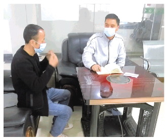 圖為王久遠(右)為群眾提供法律咨詢服務(wù)。