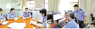 圖② 劉洪偉(右)和戰(zhàn)友研判案情。