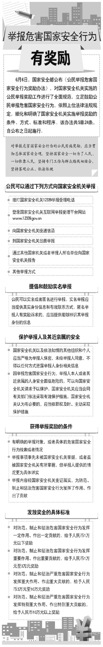 舉報(bào)危害國家安全行為有獎(jiǎng)勵(lì)