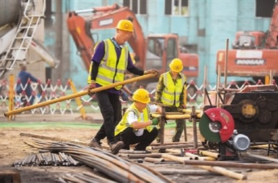 6月24日,內(nèi)蒙古自治區(qū)包頭市友誼十九小區(qū)改造現(xiàn)場,工人們在工地上忙碌。新華社記者 彭源攝
