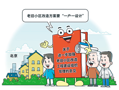 今年3月,北京市住房城鄉(xiāng)建設(shè)委等五部門出臺《關(guān)于進一步加強老舊小區(qū)改造工程建設(shè)組織管理的意見》,提出38條措施加強老舊小區(qū)改造組織管理。其中規(guī)定,老舊小區(qū)改造前應(yīng)開展入戶調(diào)查,回應(yīng)合理個性化需求,做到“一戶一設(shè)計”。