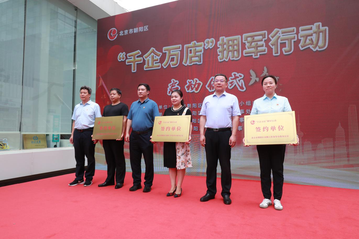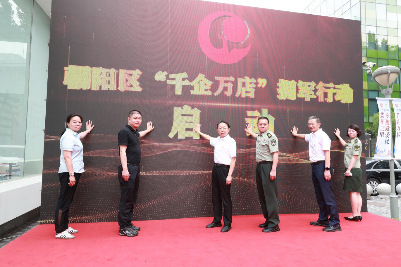 在中國(guó)人民解放軍建軍95周年即將到來之際,為提升首都雙擁工作服務(wù)保障力度,進(jìn)一步做好北京市社會(huì)化擁軍活動(dòng)的拓展延伸,7月30日上午,朝陽區(qū)“千企萬店”擁軍行動(dòng)啟動(dòng)儀式在三里屯西街隆重舉行。北京市退役軍人事務(wù)局副局長(zhǎng)賀軍,市退役軍人事務(wù)局擁軍優(yōu)撫處處長(zhǎng)楊樹旺,朝陽區(qū)委常委、武裝部部長(zhǎng)王維民,副區(qū)長(zhǎng)孟銳,區(qū)退役軍人事務(wù)局局長(zhǎng)田志剛,以及三里屯街道、奧運(yùn)村街道、管莊地區(qū)主要領(lǐng)導(dǎo),簽約單位、駐區(qū)部隊(duì)代表參加活動(dòng)。