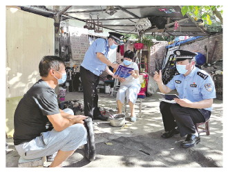 圖③ 曹金生(右一)走訪轄區(qū)群眾,進(jìn)行夏季安全生產(chǎn)檢查。