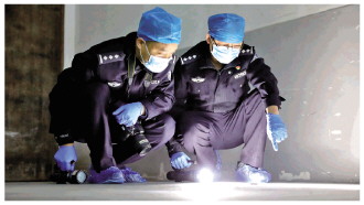 圖② 張繼秋(右)在勘查案發(fā)現(xiàn)場。