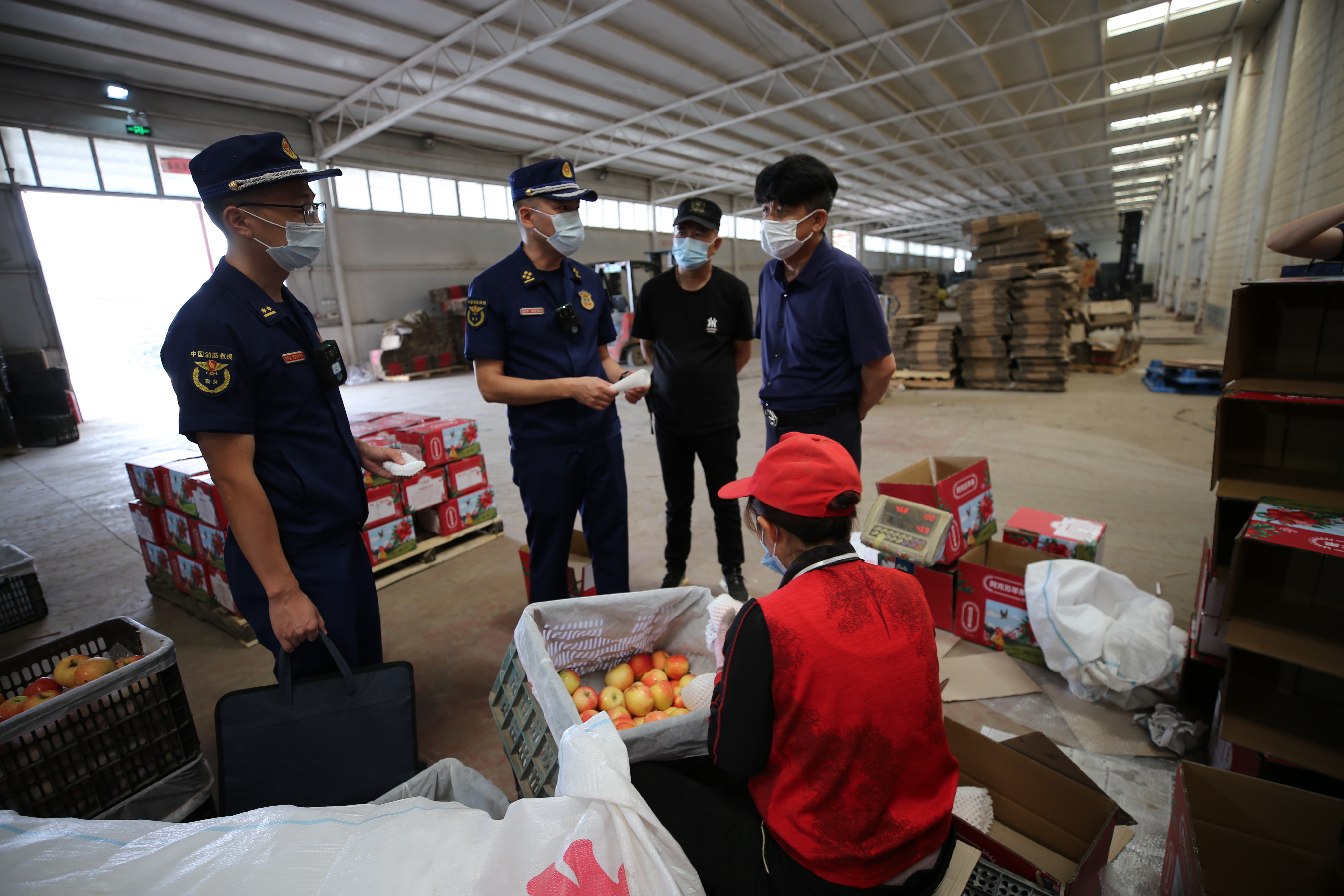 隨著新疆阿克蘇地區(qū)果品成熟,各類涉果企業(yè)也隨之進(jìn)入加工、生產(chǎn)旺季。為切實消除火災(zāi)隱患,阿克蘇地區(qū)消防救援支隊聯(lián)合轄區(qū)公安、工商等部門組成聯(lián)合檢查組,開展涉果企業(yè)消防安全專項整治行動。圖為8月31日,阿克蘇地區(qū)消防救援支隊消防監(jiān)督員在轄區(qū)涉果企業(yè)開展消防安全隱患排查。