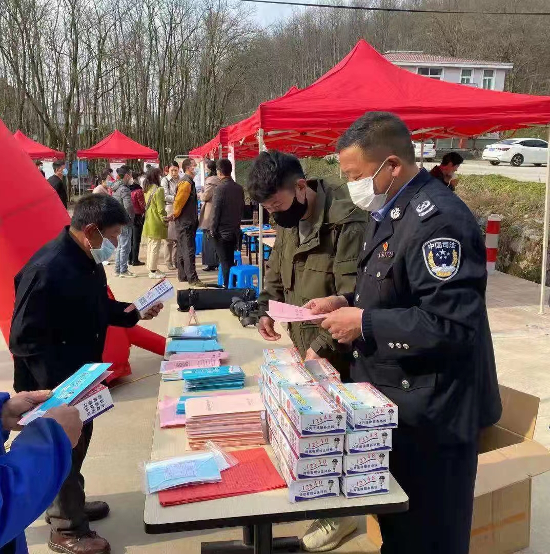 圖為施世慶(右)在酉華司法所門前廣場開展普法宣傳活動。