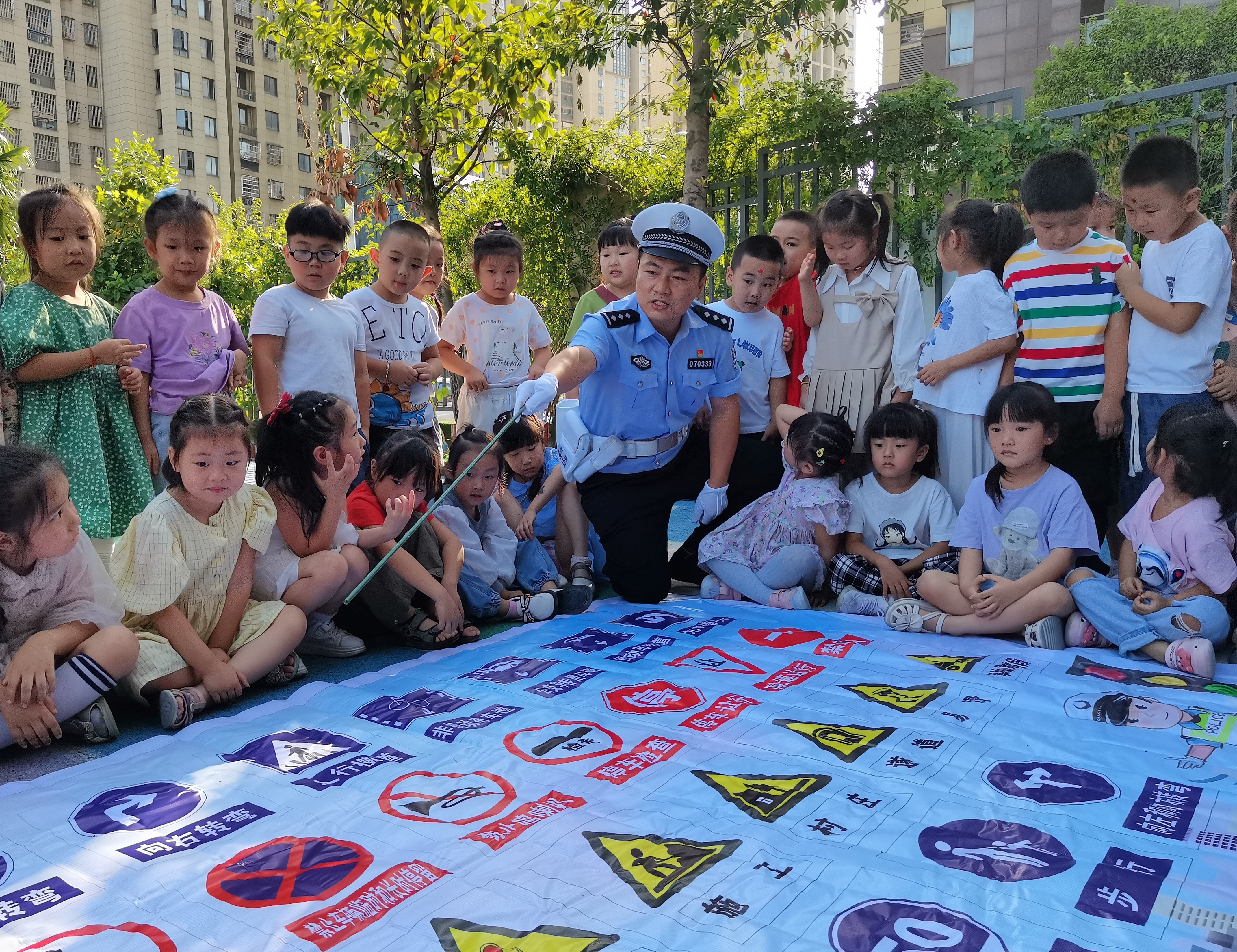 “為什么不能闖紅燈?”“過馬路為什么要走斑馬線?”“走路時為何不能打鬧?”為加強學(xué)齡前兒童的交通安全教育,安徽省蕪湖市公安局交警支隊三山大隊民警近日走進(jìn)轄區(qū)幼兒園,開展“知危險、會避險”主題交通安全教育活動。圖為民警向小朋友講解常見交通標(biāo)識。