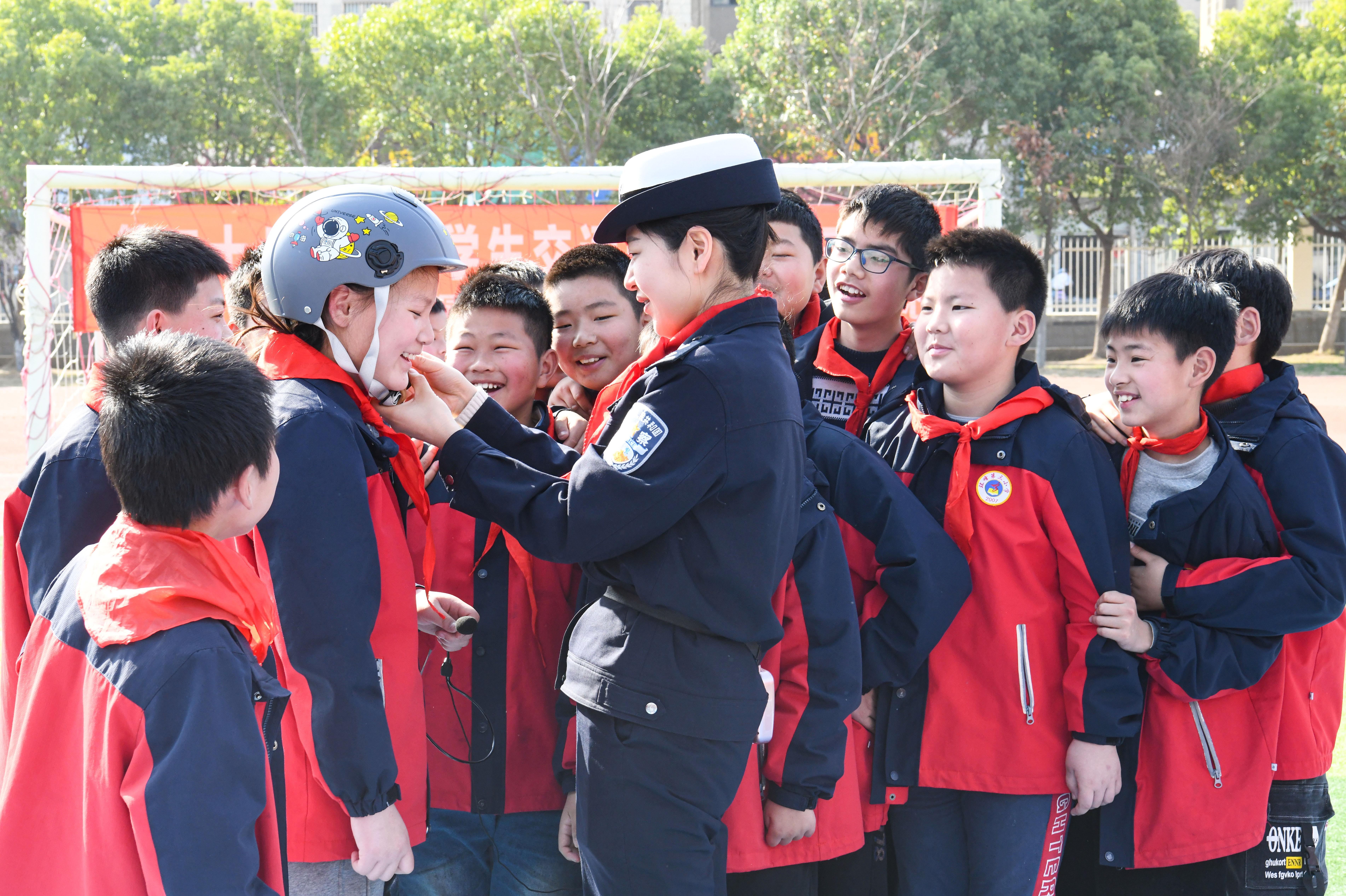 3月27日,安徽省含山縣公安局交管大隊(duì)組織民警走進(jìn)環(huán)峰第三小學(xué)開展以“大手拉小手 一起學(xué)交安”為主題的宣傳教育活動(dòng)。民警根據(jù)現(xiàn)實(shí)生活中常見的一些交通違法行為,制作“交通安全游戲棋”,通過情景表演等形式,讓孩子們?cè)谠⒔逃跇分袑W(xué)習(xí)交通安全知識(shí)。圖為民警向?qū)W生講解安全頭盔的重要性。 本報(bào)通訊員 馮善軍 攝