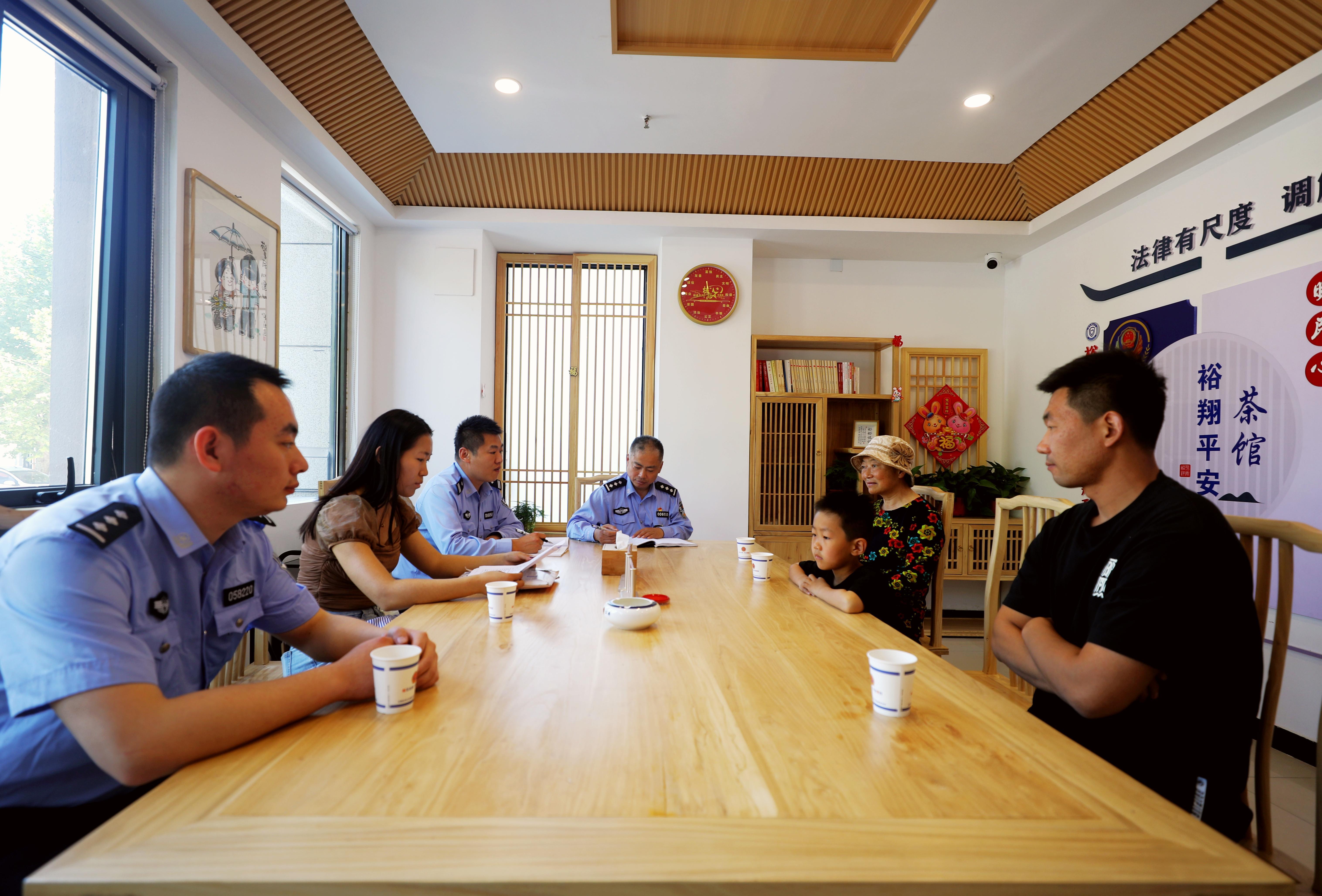 “裕翔平安茶館”面積約25平方米,堅(jiān)持以人為本、和諧暖心,采用“中國(guó)風(fēng)”建設(shè)裝修風(fēng)格,設(shè)立“法律有尺度、調(diào)解有溫度、辦事有準(zhǔn)度”主題文化墻,積極營(yíng)造“和為貴”的氛圍。實(shí)際工作中,民警將調(diào)解矛盾糾紛和燒水敬茶、談心談話充分結(jié)合,實(shí)現(xiàn)當(dāng)事人由“怒氣沖沖”到“心平氣和”、由“缺乏理智”到“通情達(dá)理”的轉(zhuǎn)變,搭建當(dāng)事人交流溝通的暖心平臺(tái)。