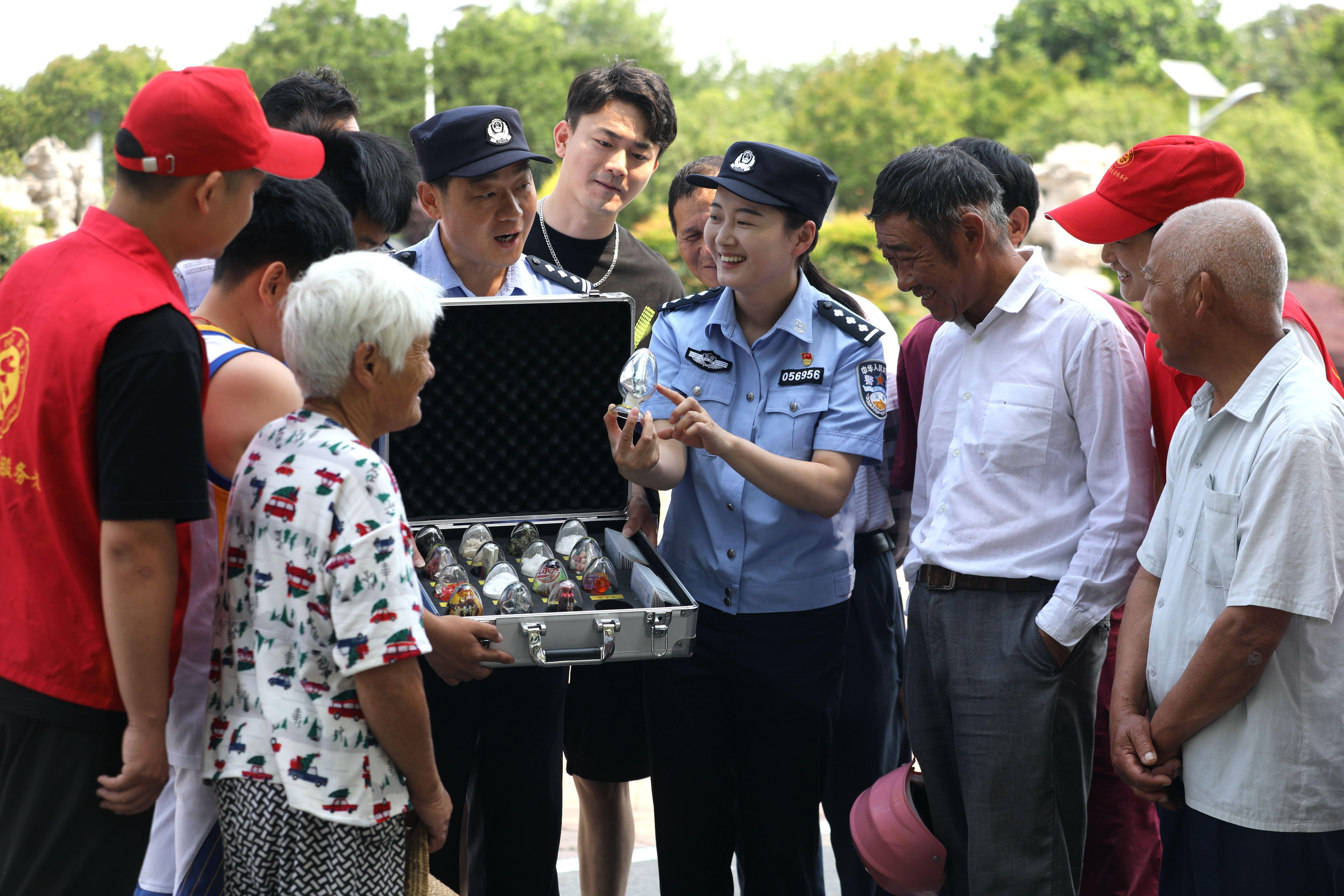 今年6月是我國第13個“全民禁毒宣傳月”,6月14日,安徽省舒城縣公安局柏林派出所民警走進轄區(qū)秦橋村開展禁毒宣傳。民警通過展示仿真毒品模型、面對面講解禁毒知識,引導群眾增強識毒拒毒意識。圖為民警利用仿真毒品模型向群眾講解禁毒知識。