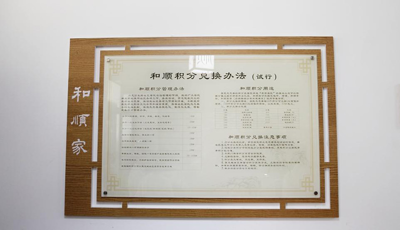 回龍壩鎮(zhèn)聚龍城社區(qū)“和順茶館”營業(yè)至今,共收到民情民意800余條,解決群眾身邊事480件,舉辦百姓議事會(huì)50場,切實(shí)踐行了聽民聲、知民心、解民困。同時(shí),在茶館的“和順家”還開設(shè)了一個(gè)積分兌換超市,設(shè)計(jì)專用于基層治理積分兌換的“和順券”,群眾每參與一次義務(wù)勞動(dòng),可積20分;協(xié)助解決一項(xiàng)調(diào)解任務(wù),可積20分;幫扶一名貧困戶或困難家庭,可積20分……“我真沒想到,這次能兌換這么多獎(jiǎng)品,這些都是生活必需品,不用花錢買了……”居民胡代珍拿著一大包生活用品,笑呵呵地說,這是她積極參與社區(qū)公益活動(dòng)獲得的積分兌換的。