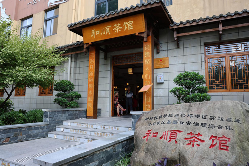 茶館在川渝地區(qū)是最常見的休閑去處,在重慶市沙坪壩區(qū)回龍壩鎮(zhèn)聚龍城社區(qū),一間非民辦“和順茶館”成為當(dāng)?shù)匕傩盏男聦櫍撼撕炔枇奶欤桊^還融合了各職能部門下沉社區(qū)的十幾個(gè)辦公室功能。政策宣講、糾紛調(diào)解、法律咨詢……一杯清茶間,社區(qū)里那些難辦、急辦的事總能得到妥善解決。