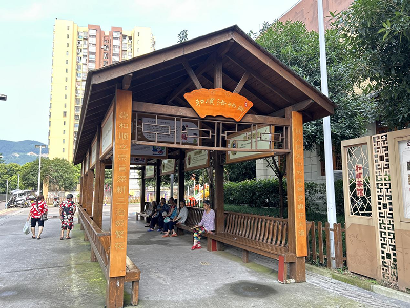 重慶市沙坪壩區(qū)回龍壩鎮(zhèn)聚龍城社區(qū)“和順茶館”是一間非民辦的多功能茶館:除了喝茶聊天,這里還融合了各職能部門下沉社區(qū)的十幾個(gè)辦公室功能,在這里每周定期為社區(qū)居民開展技能培訓(xùn)、文化宣講、初心回顧,以及文娛表演等。一杯茶間,就為百姓提供了政策宣講、糾紛調(diào)解、法律咨詢等身邊服務(wù)。而且,這里還是百姓的“議事堂”“民意收集站”。
